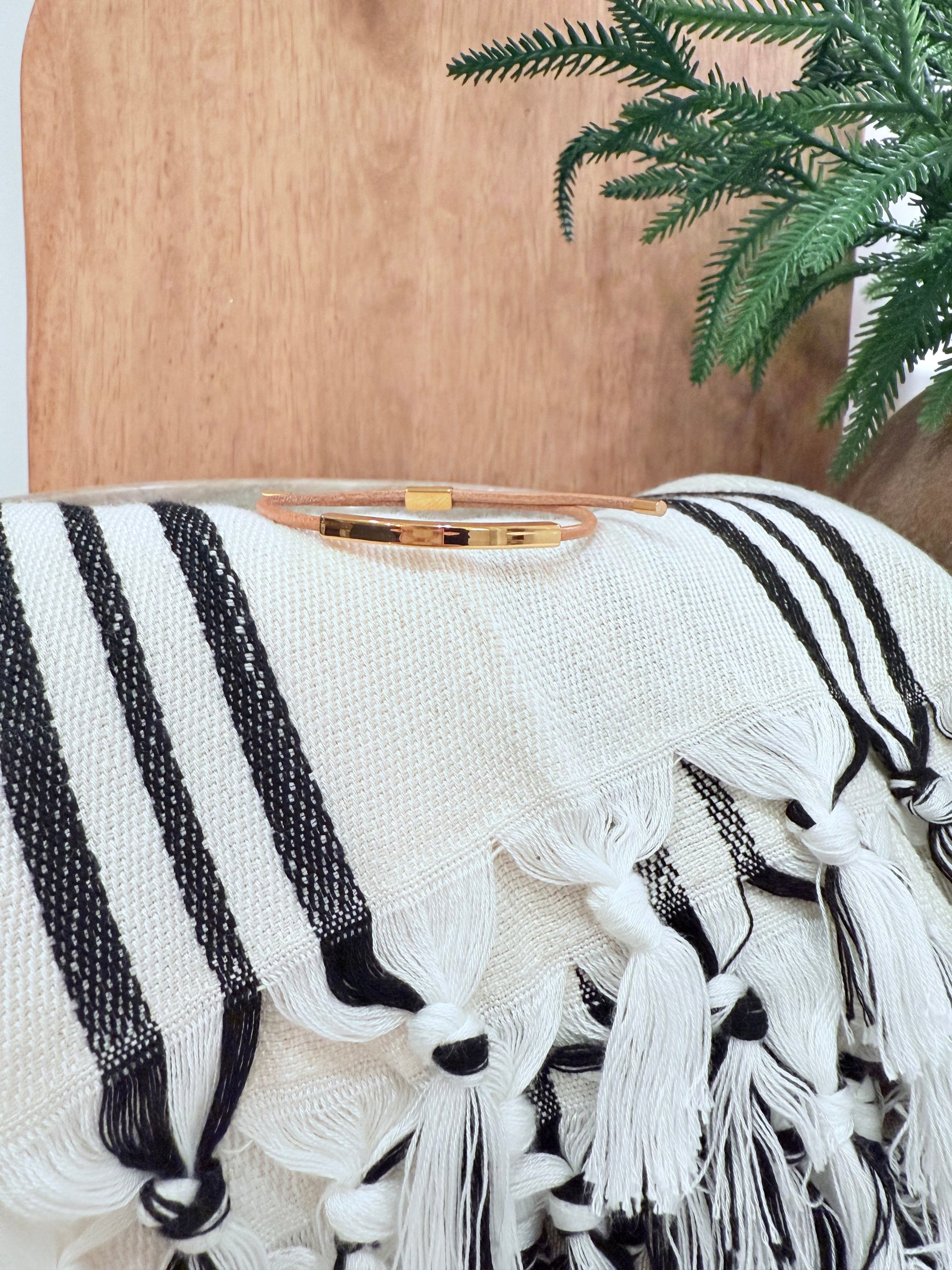 Introducing our 18K Gold Plated Adjustable Leather Bracelet, the perfect accessory for any occasion. Made with simple yet elegant gold plating, it adds a touch of sophistication to any outfit. The adjustable leather band ensures a comfortable and secure fit, making it a must-have for any jewelry collection.