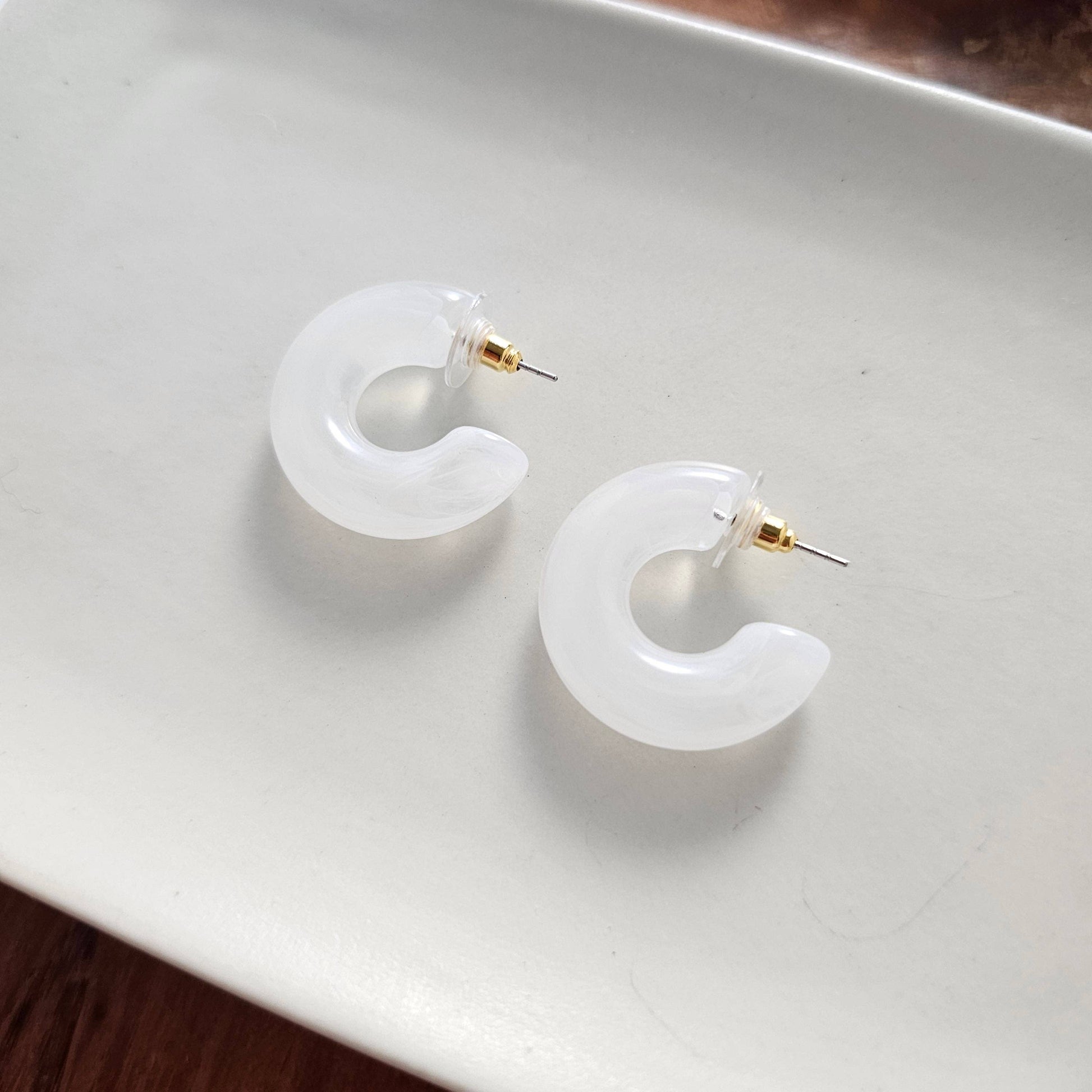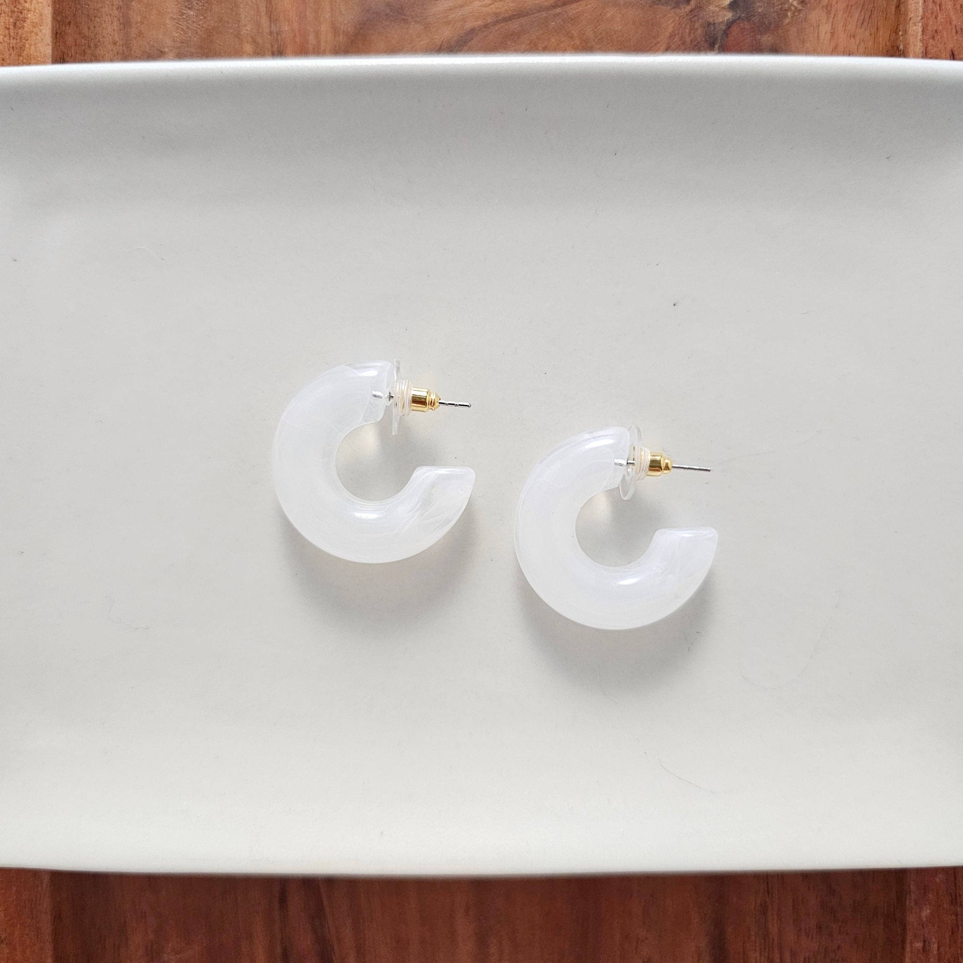 The Chloe Hoops boast a modern, chunky silhouette, crafted from durable resin for everyday wear. Their timeless design and long-lasting quality make them the perfect statement piece.
