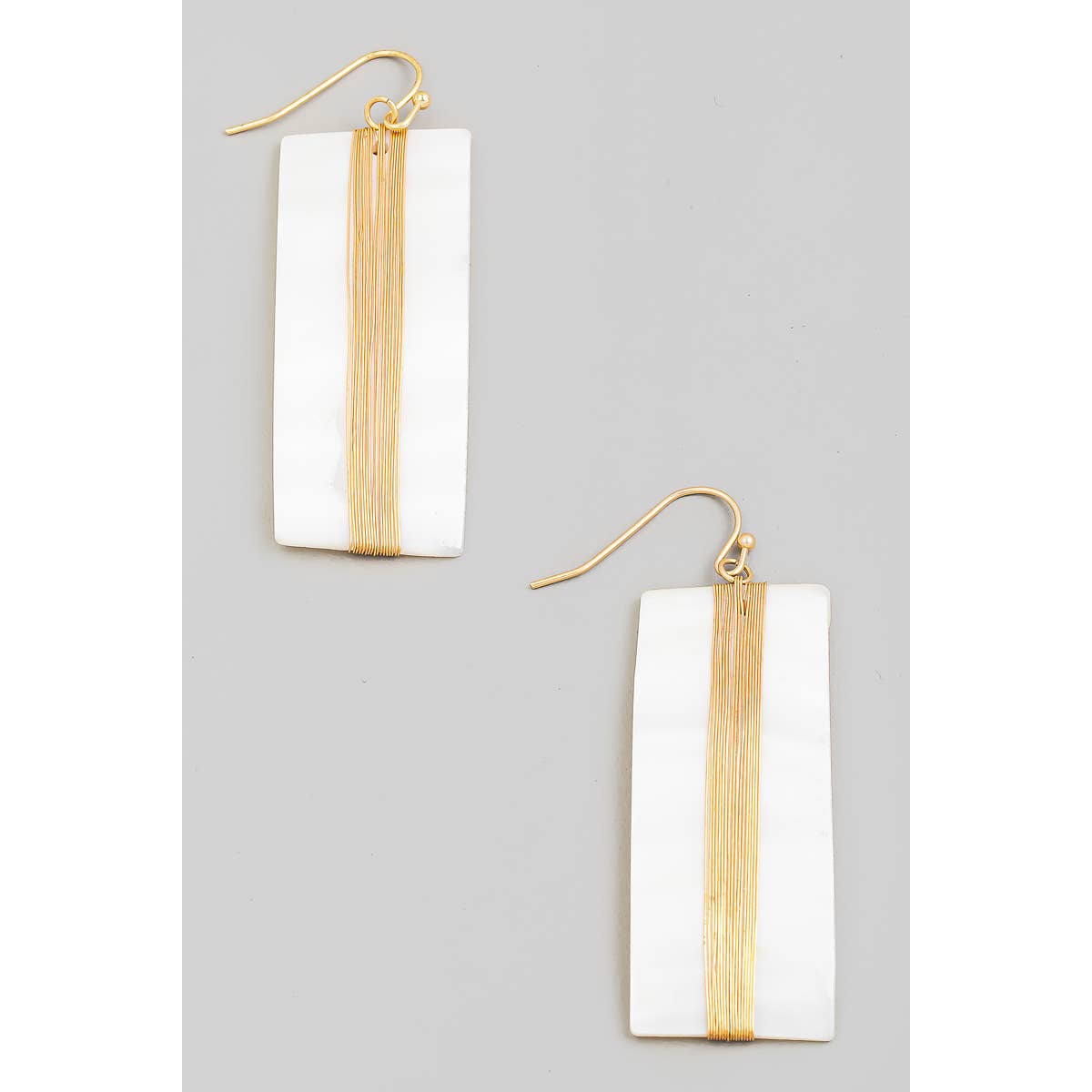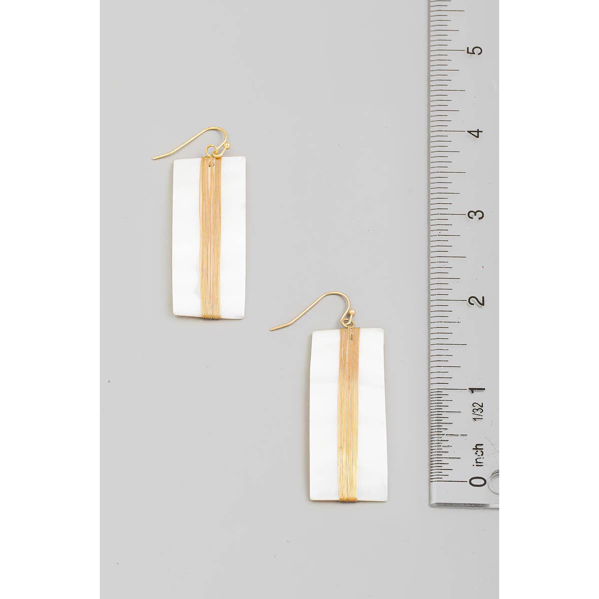 This pair of dangle earrings displays a fashionable curved seashell rectangle dangle earrings style. Celebrate the art of accessorizing with this piece that effortlessly encapsulates modern trends.