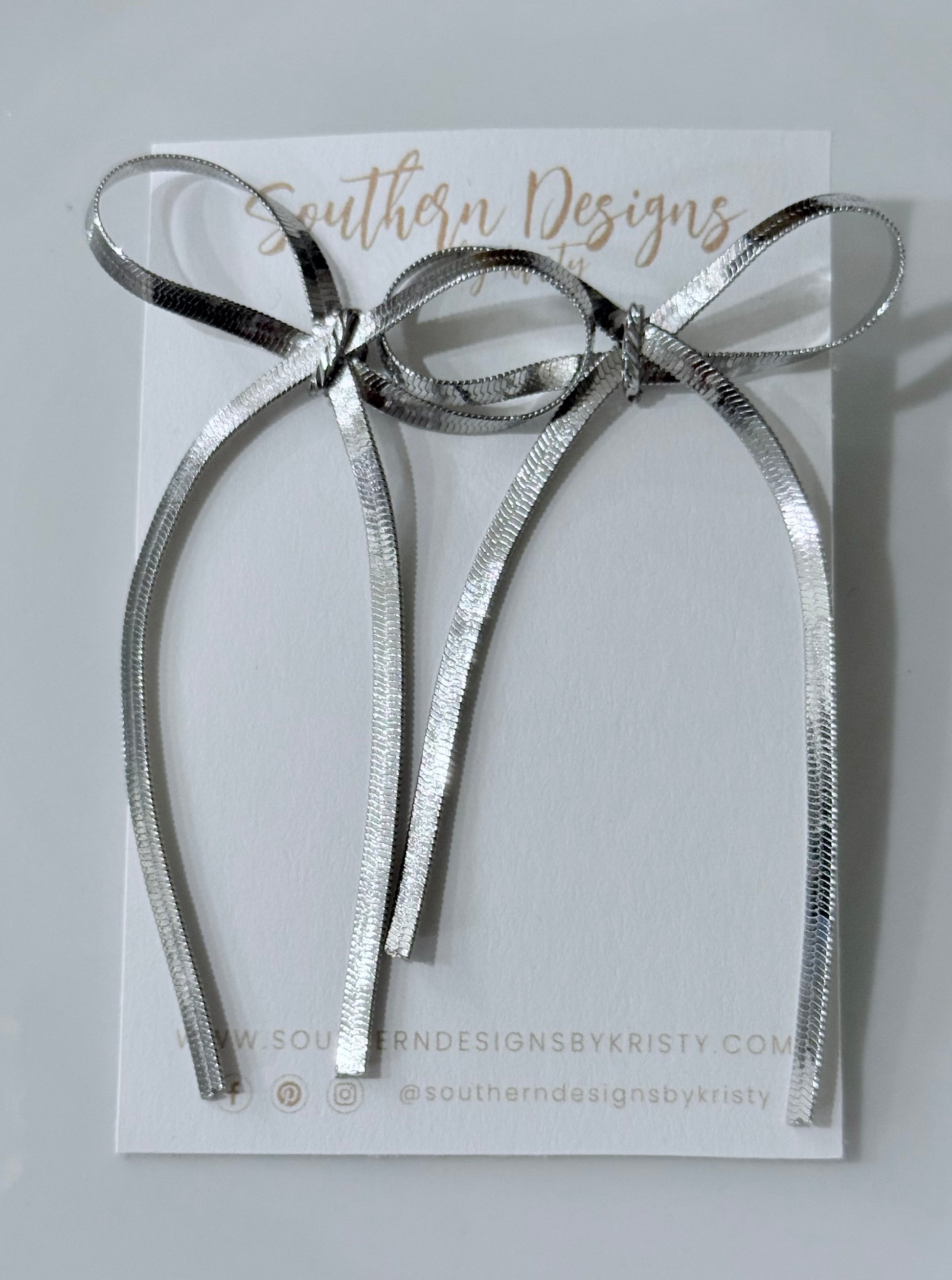 Flat Metallic Chain Ribbon Bow Stud Earrings