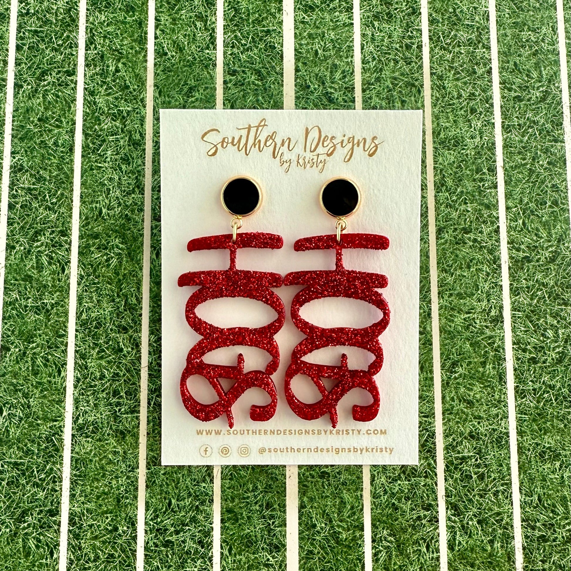 Show off your Razorback pride with a touch of sparkle! Our Glitter HOGS Earrings are the ultimate statement piece for game day, tailgates, and cheering on the Hogs in style.