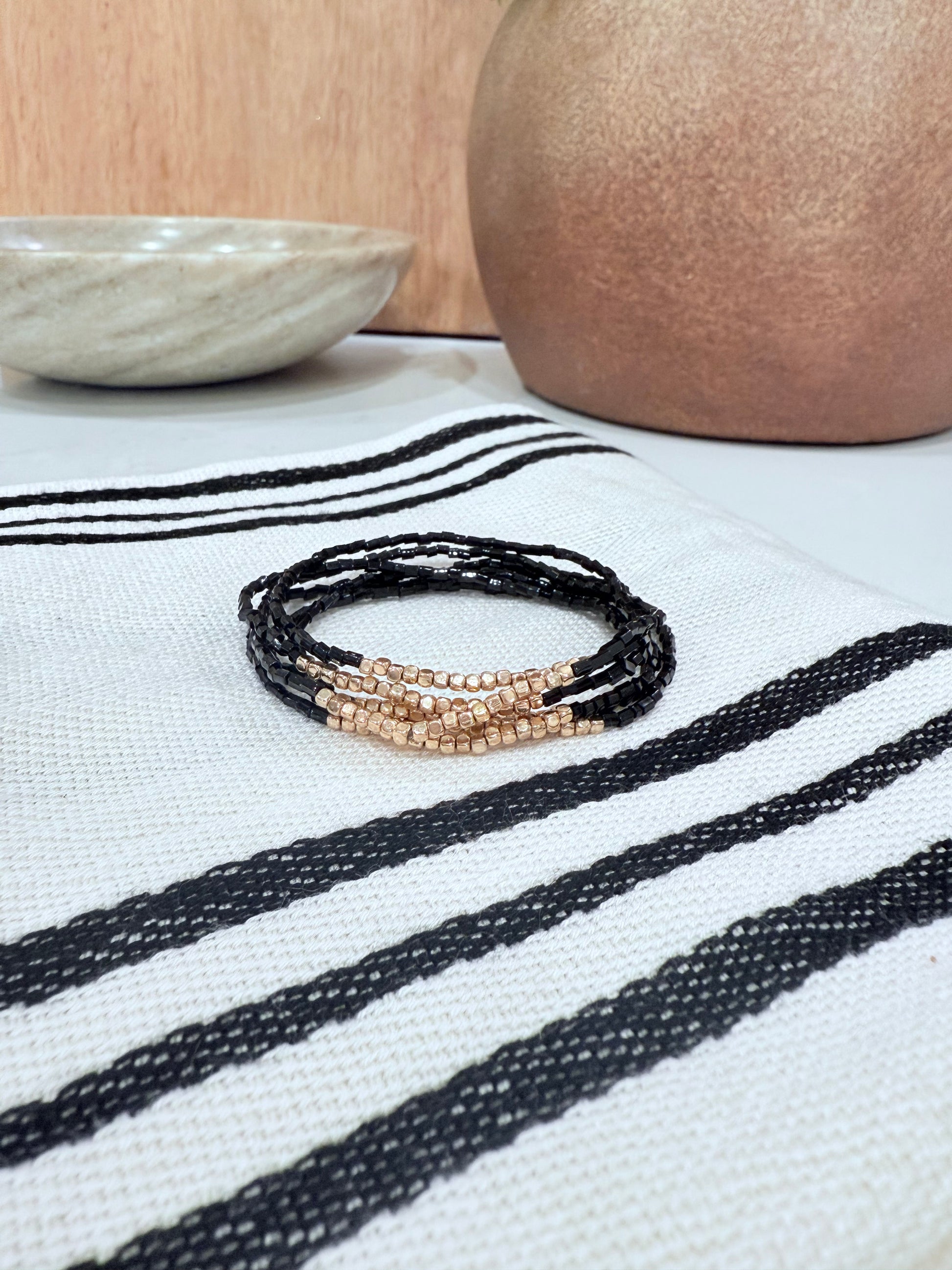 Gold and Black Beaded Bracelets