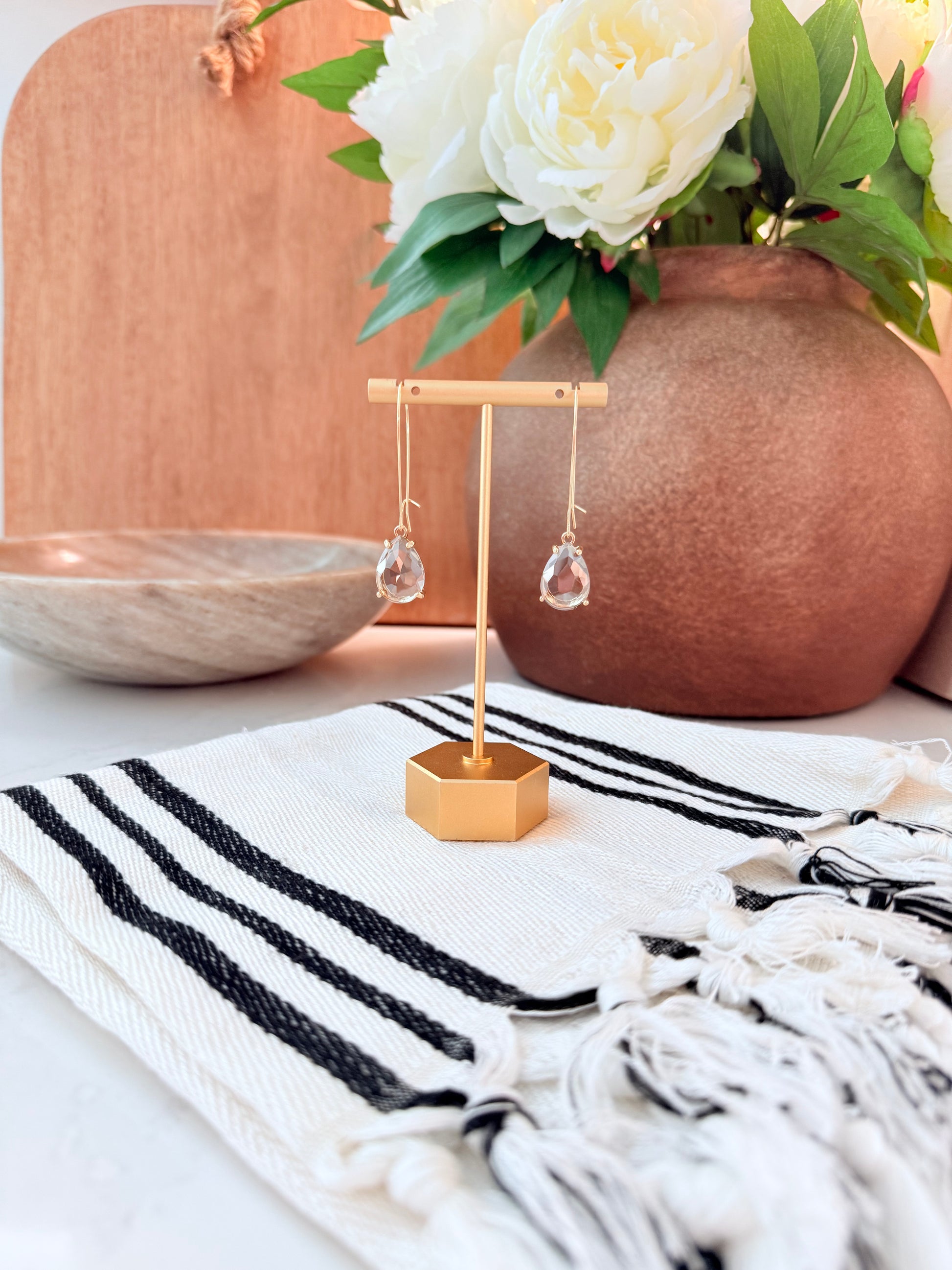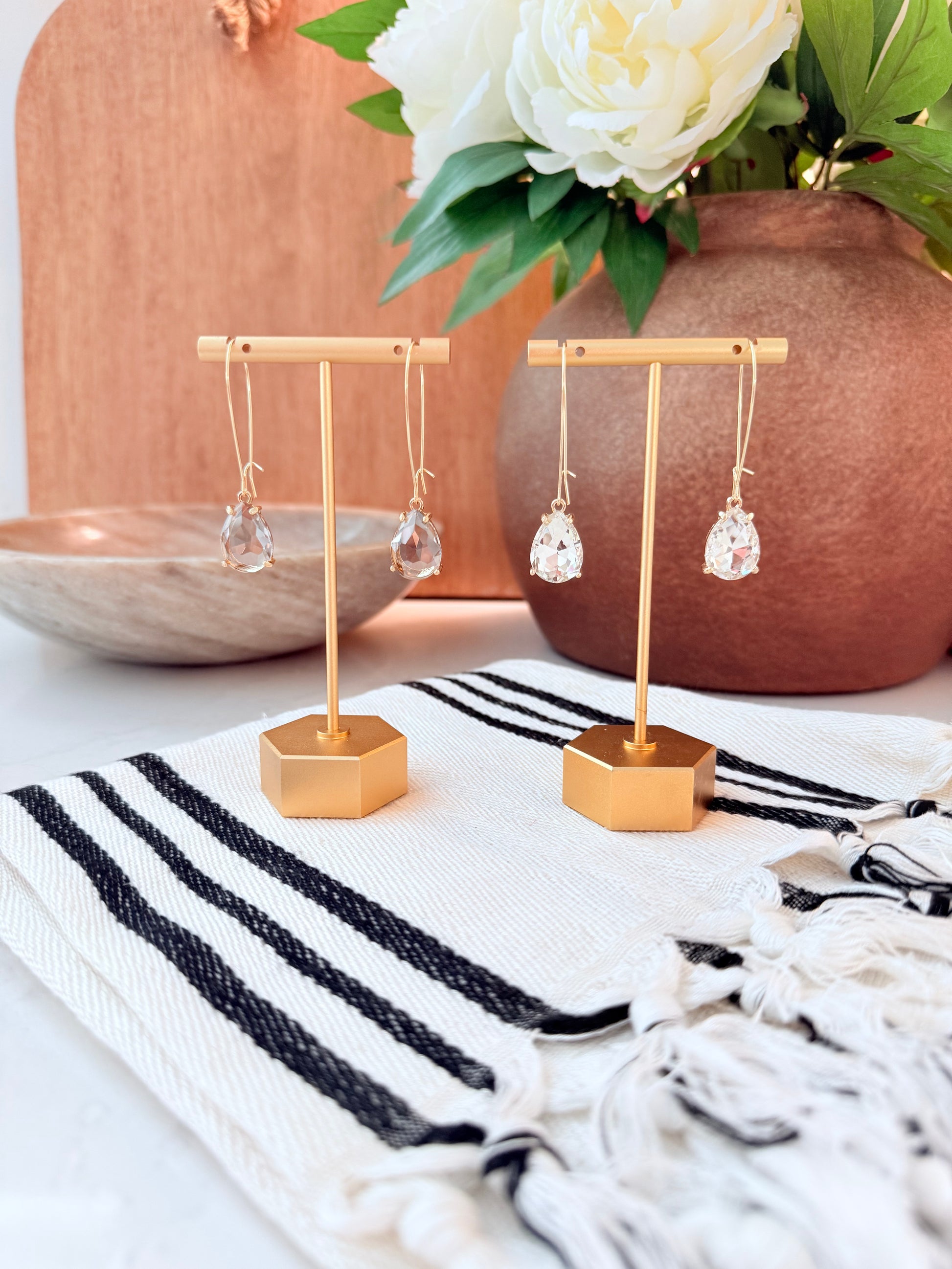 Discover a touch of elegance with these Rhinestone Crystal Drop Earrings. Our earrings are a perfect blend of classic and modern style. The stunning rhinestone crystal drop adds a sparkle that is sure to turn heads. These dangle earrings are an effortless way to elevate any outfit.