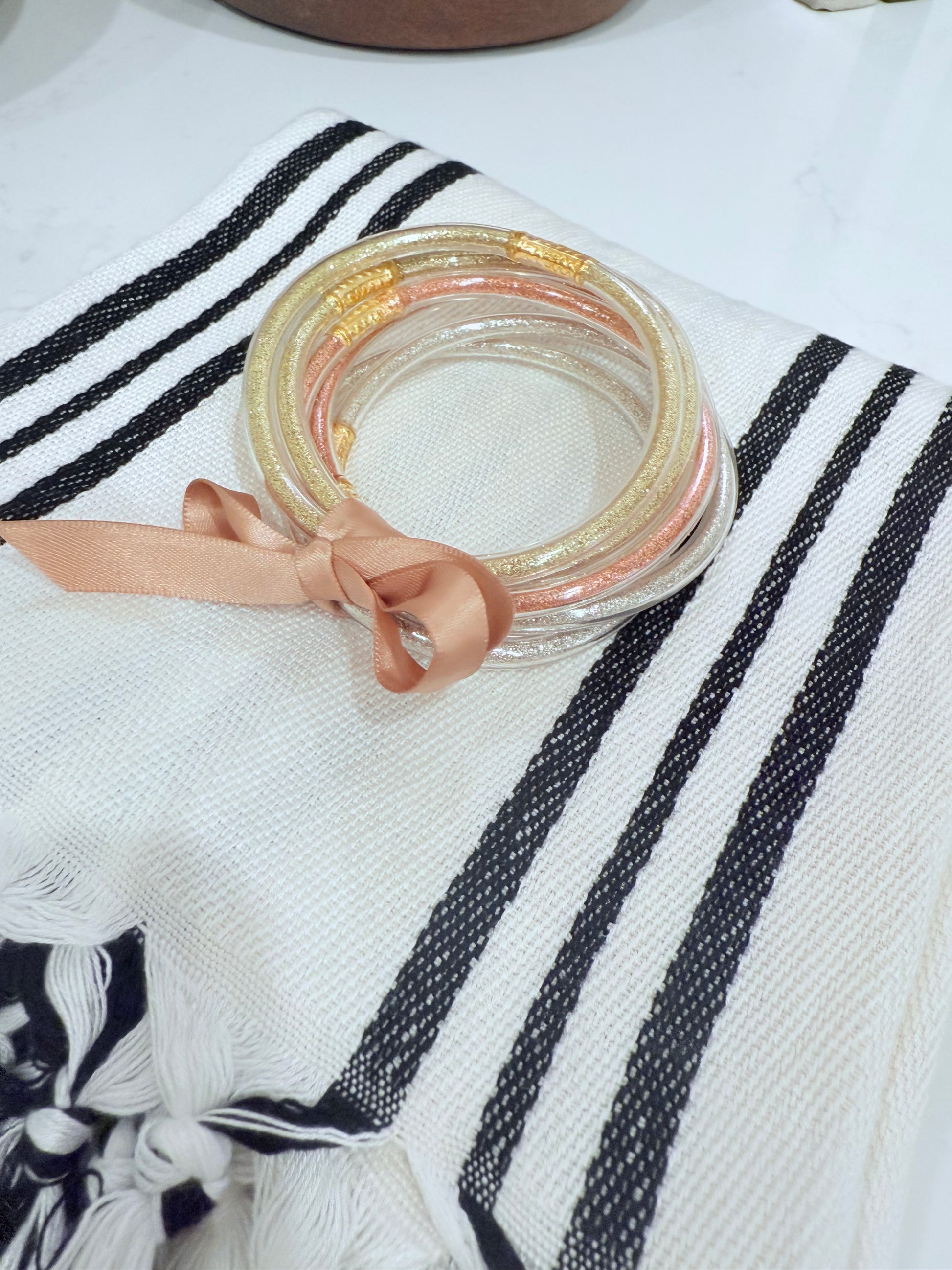 Spice up your style with our Jelly Bangle Bracelet Stack. These fun jelly stacks will add a playful touch to any outfit. Stack 'em up for a unique look that's sure to stand out. No clasp needed! (Jelly, yes!)