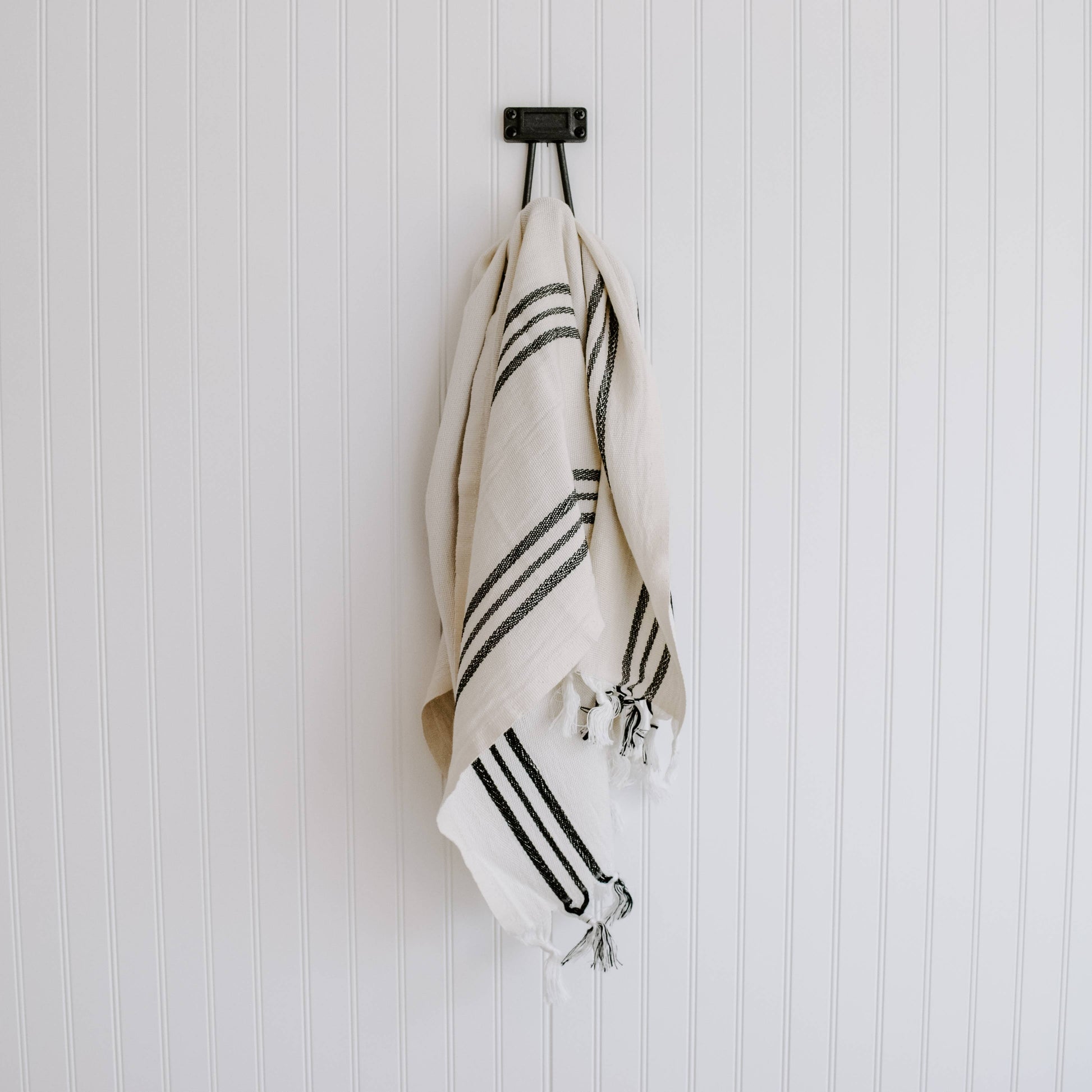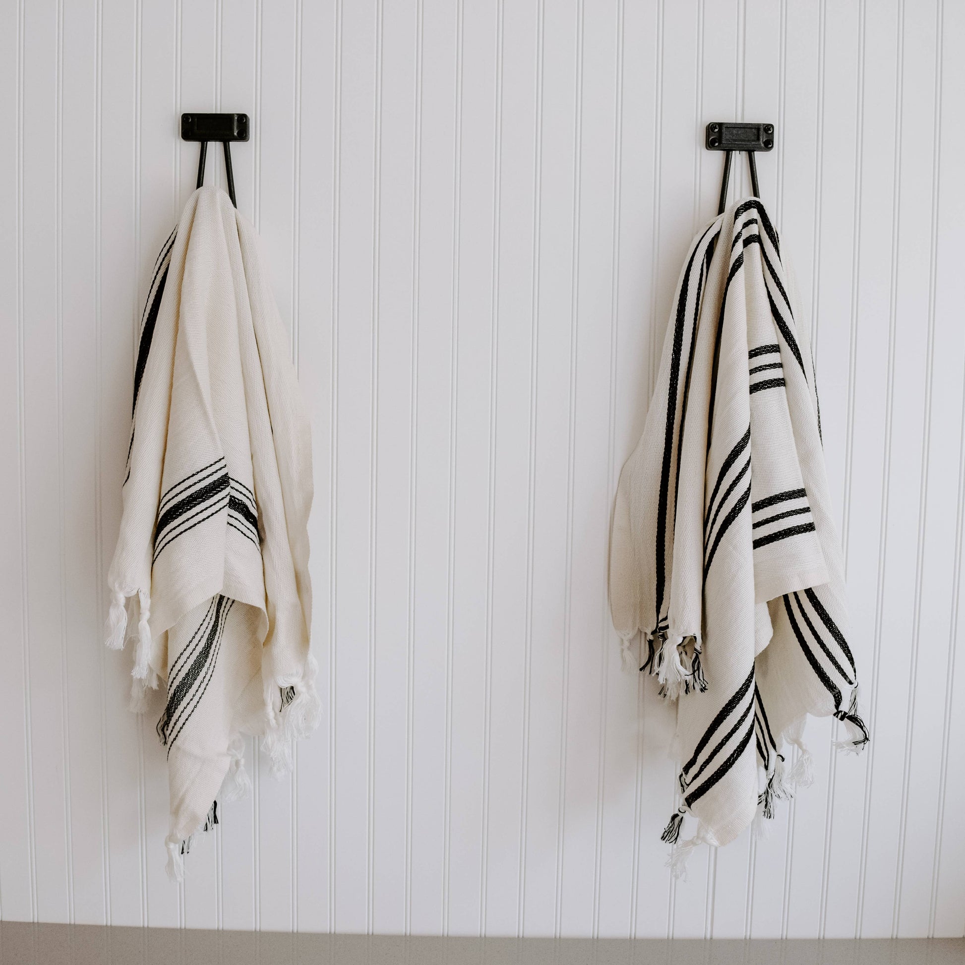 Our generously oversized, super soft, Turkish Cotton + Bamboo Towels are ideal for use as hand towels, kitchen towels, bath, or hair towels, toddler/baby towels, and more. This quick drying towel will become softer and more absorbent with each wash. Each towel is unique and my vary slightly in size, color, and weight. DETAILS: • Size: Approximately 19 x 35" • Color: Natural with Black Stripes (may appear cooler or warmer in color depending on light) • Hand Woven on Wooden Loom • Turkish Cotton + Bamboo • Made in Turkey • Style No. HT005 CARE: • Machine Wash Cold + Tumble Dry Low Heat • Do Not Use Hot Iron, Fabric Softener, or Bleach • Do Not Dry Clean