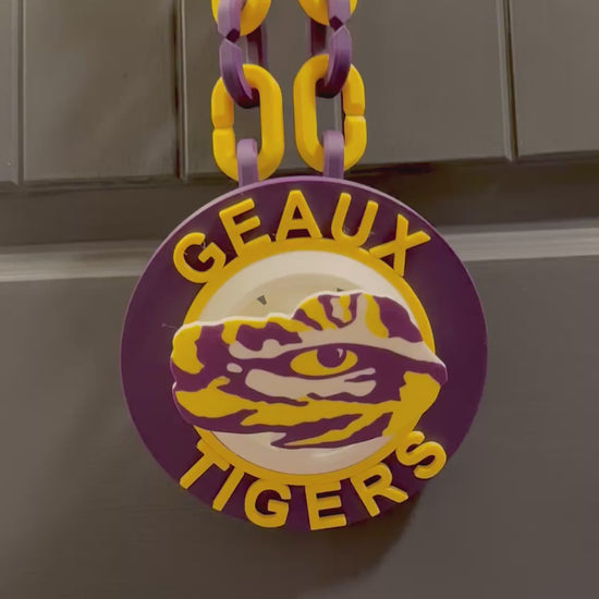 Crafted in LSU’s iconic purple and yellow, this hype chain adds instant game-day energy whether you’re tailgating at Tiger Stadium, watching from home, or repping your team spirit all year long. Lightweight, durable, and made with precision, it’s the perfect accessory to stand out and shout Geaux Tigers!