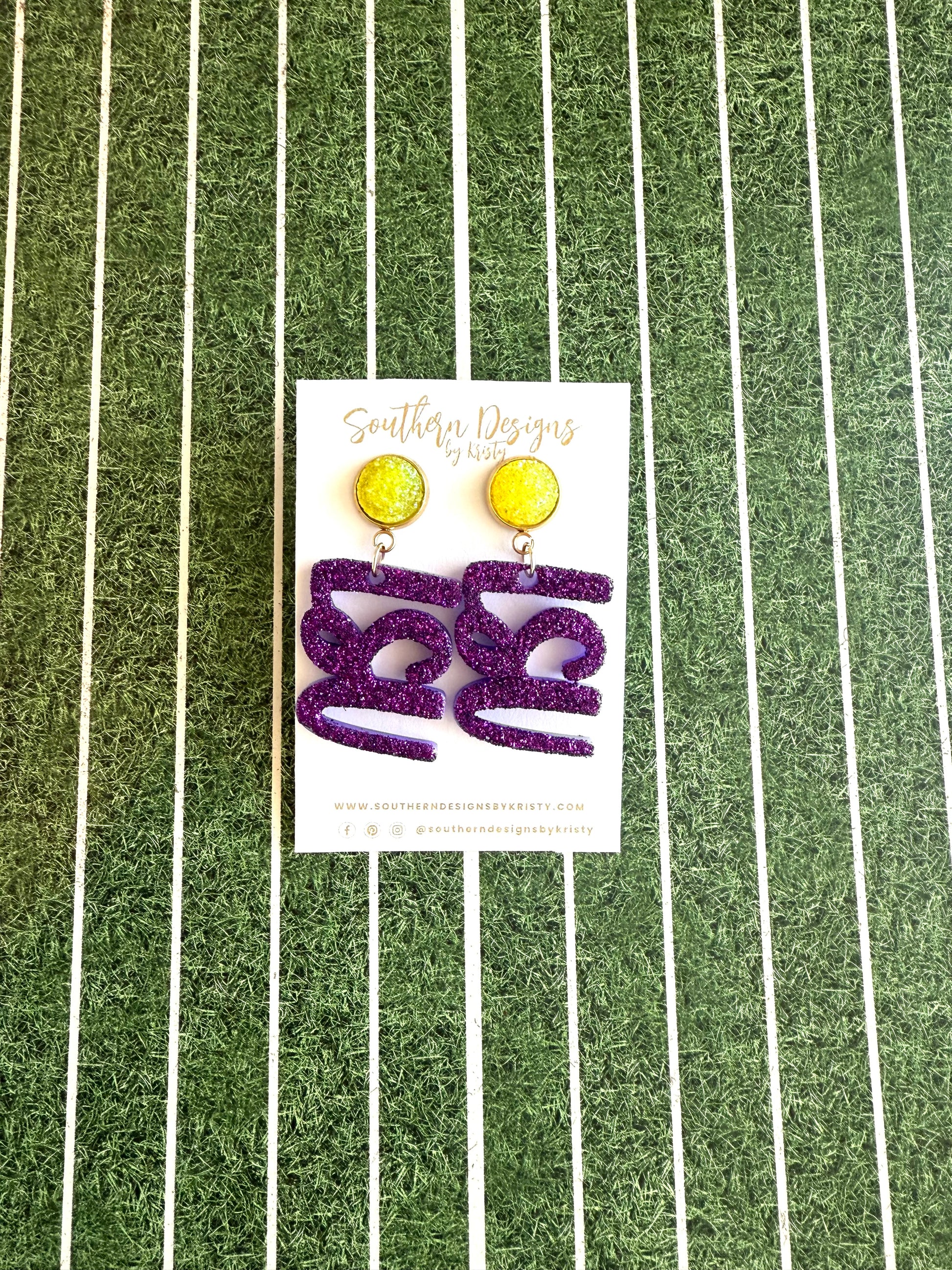 Show your Tiger spirit in style with these bold LSU Glitter Earrings perfect for game day, tailgates, and cheering on the Tigers all season long!