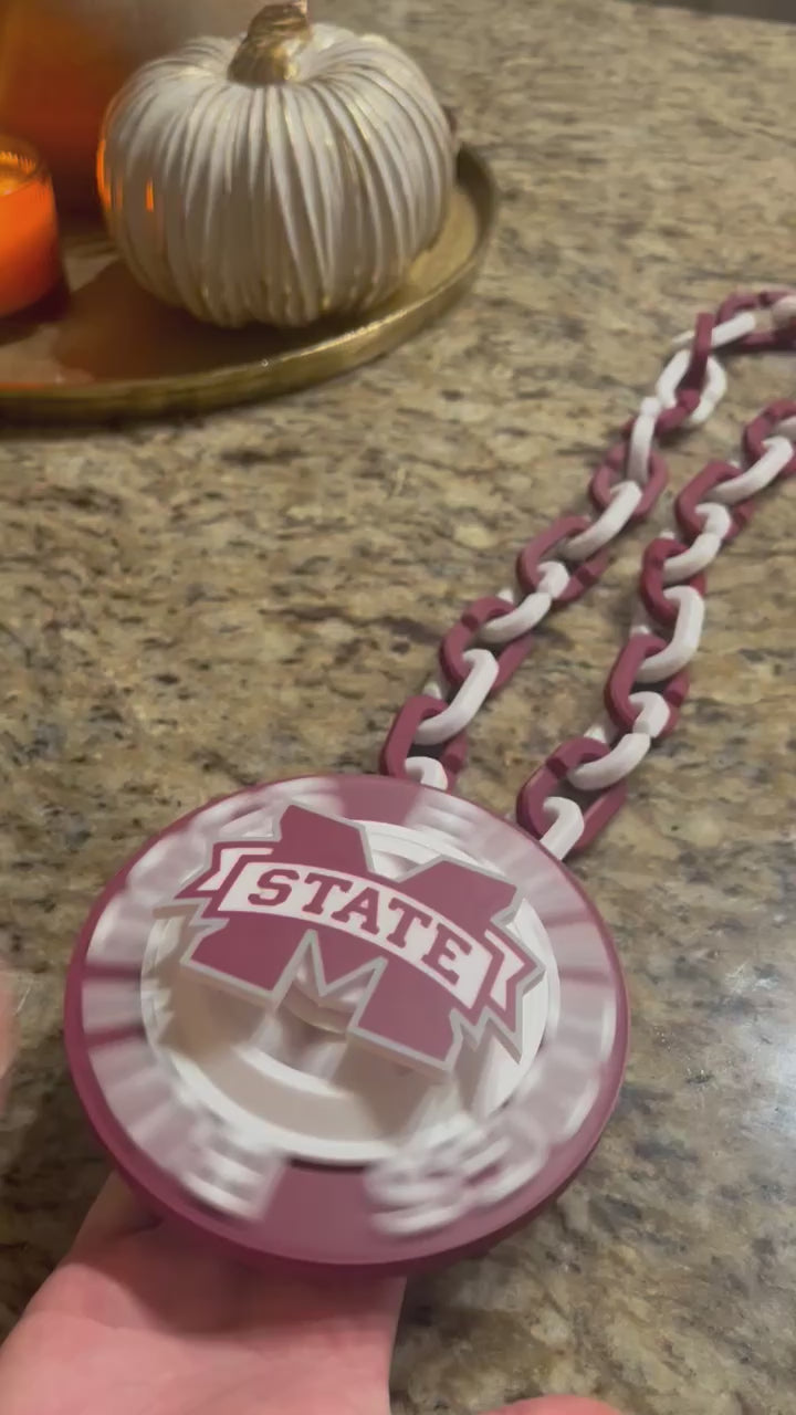 Show off your Mississippi State pride with this bold Bulldogs Spinning Hype Chain! Designed for die-hard fans, this hype chain features a double-sided spinning medallion with the iconic Mississippi State “M STATE” logo front and center. Whether you’re cheering at the stadium or watching from home, this statement piece brings serious game day energy!