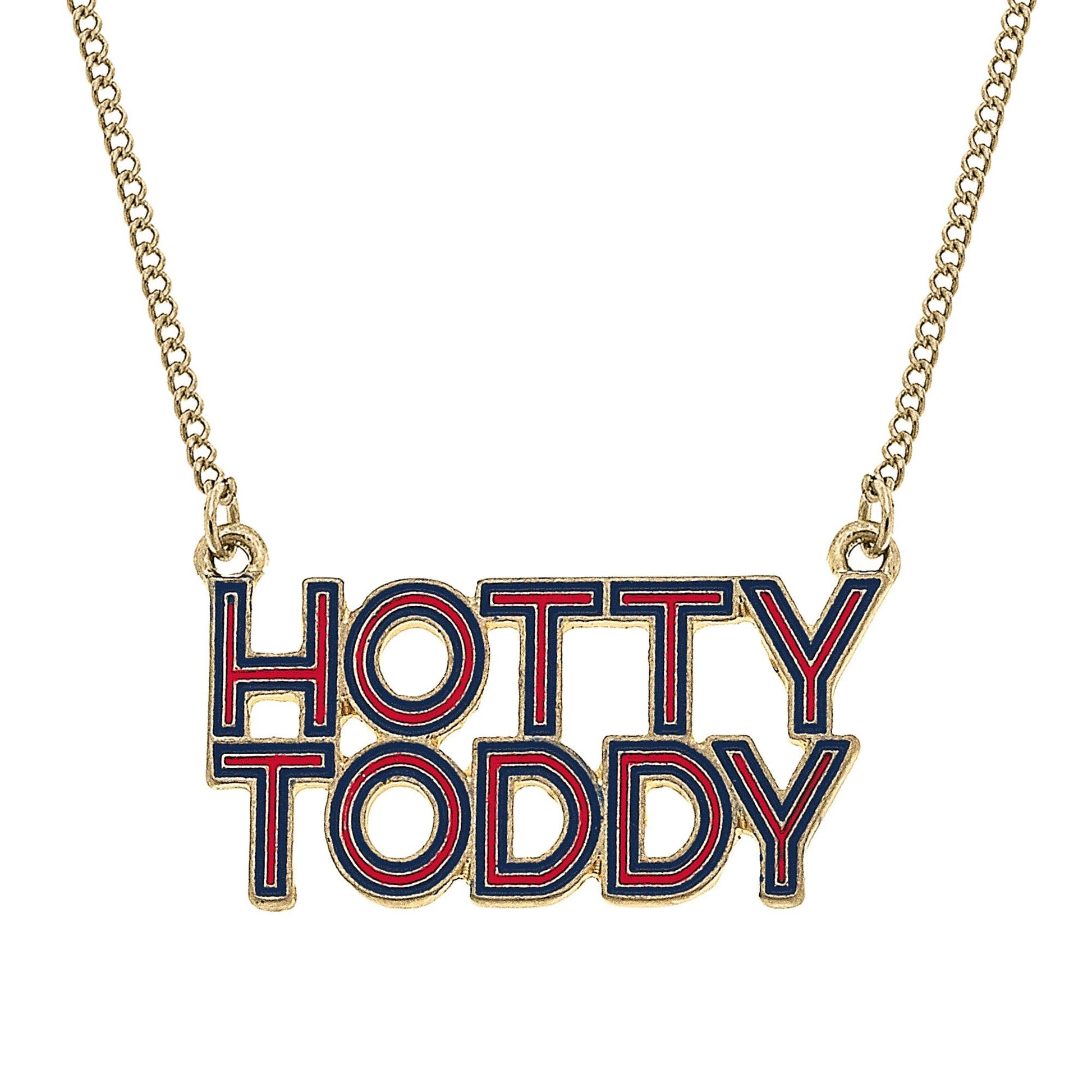 Show your team spirit with this fun Ole Miss Rebels Outline Enamel Necklace in Navy/Red! Perfect for game day or any day, the "Hotty Toddy" design adds a playful touch to your outfit. Represent your team in style!