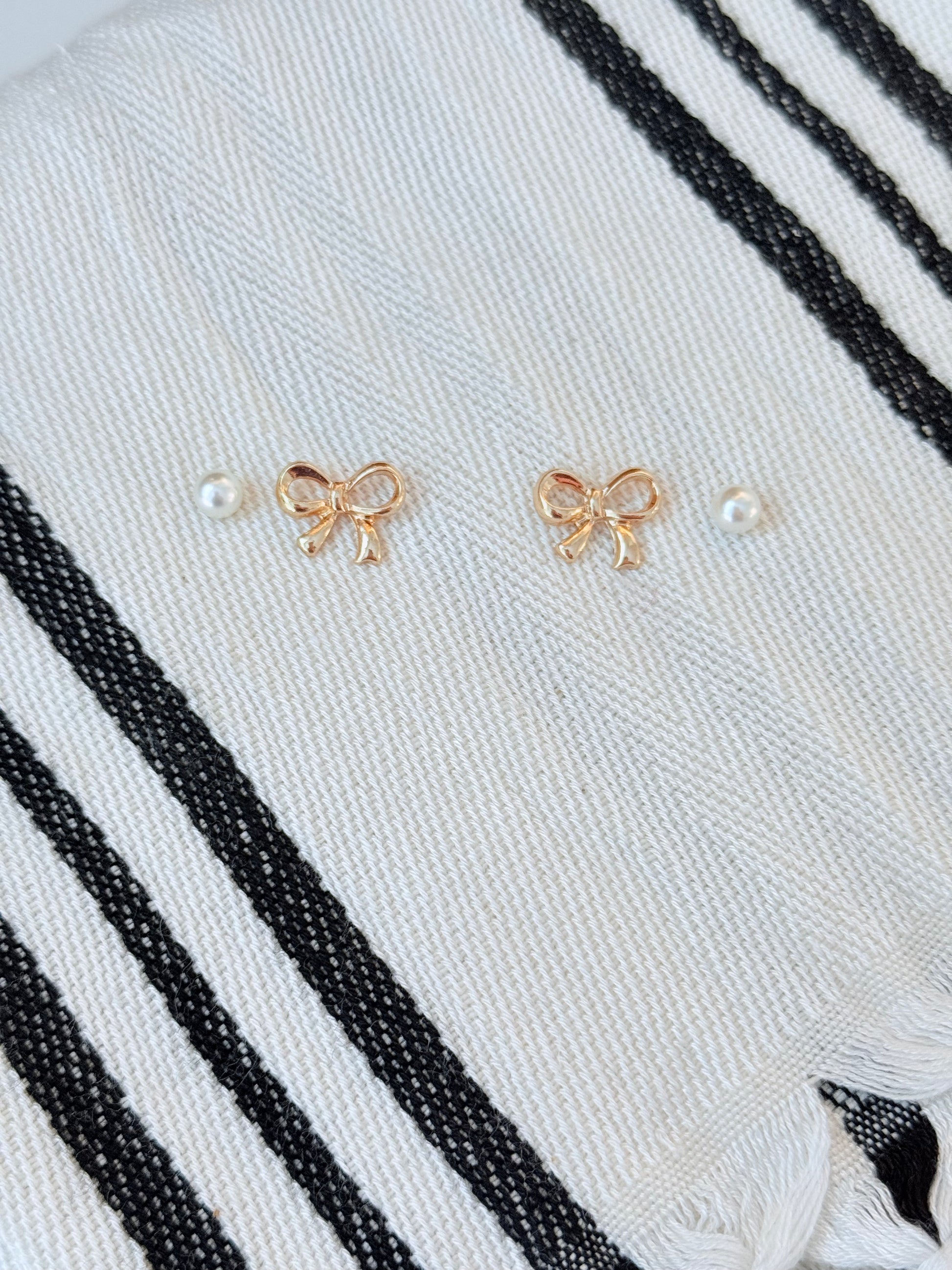 Pearl and Small Bow Stud Set