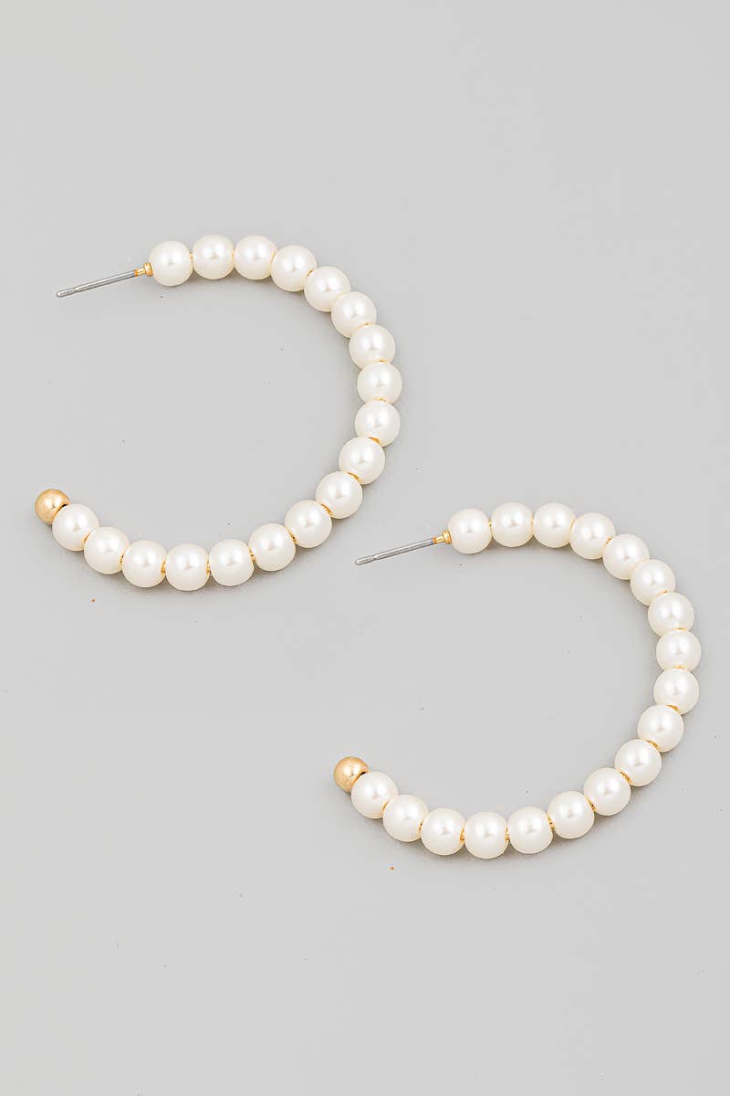 This pair of hoop earrings showcases a unique pearl bead open style. Experience a subtle blend of modernity and classic charm as this pair of hoop earrings effortlessly adorns your ensemble.