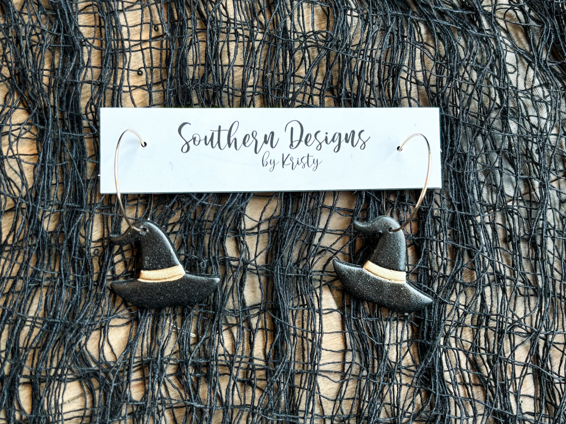 Introducing Pookie Hats - the perfect accessory to add a touch of fun and whimsy to any outfit! These witch hat dangle earrings are sure to make a statement and bring a smile to your face. Made with high-quality materials and expert craftsmanship for a lasting look.