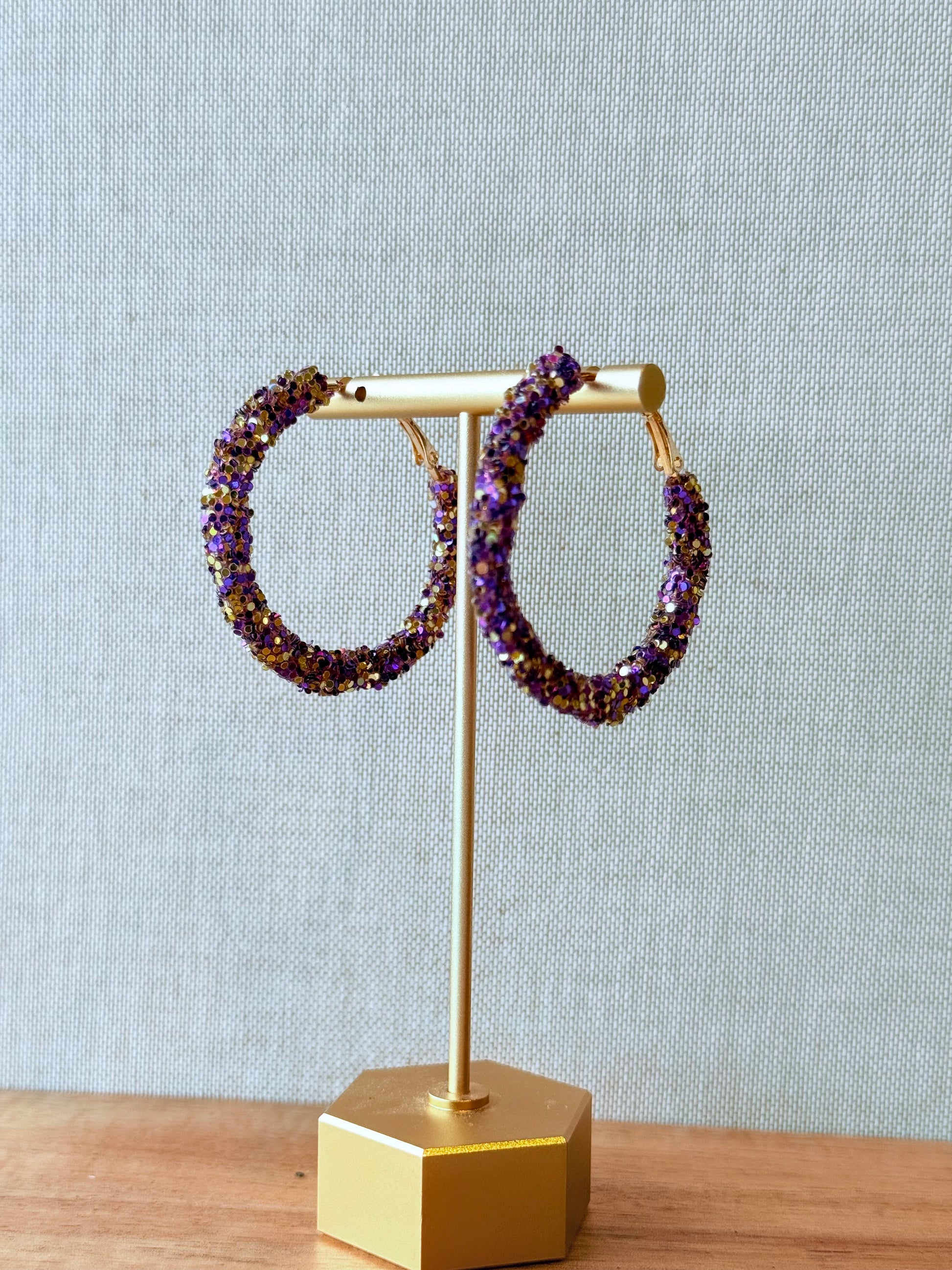 Purple & Gold Sequin Hoop Earrings