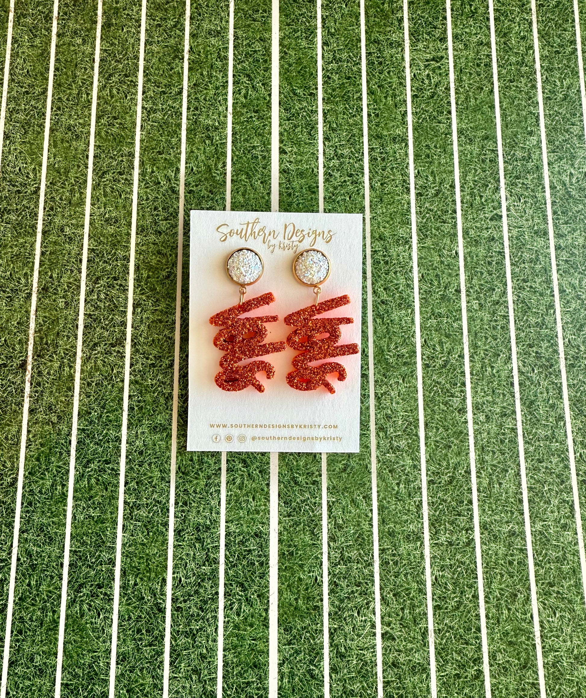 Cheer on the Tennessee Volunteers with bold, sparkling style! These handcrafted glitter earrings add the perfect pop of orange for game day and beyond. Lightweight yet eye-catching, they’re ideal for tailgating, cheering in the stands, or adding a little school spirit to your everyday outfit.